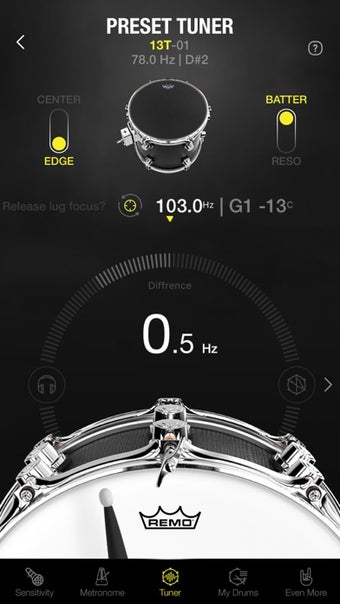 Drumtune PRO Drum Tuner requer iOS 12.1.2 ou superior. A versão atual do software é 2.0.33 e você pode executá-lo apenas em inglês.